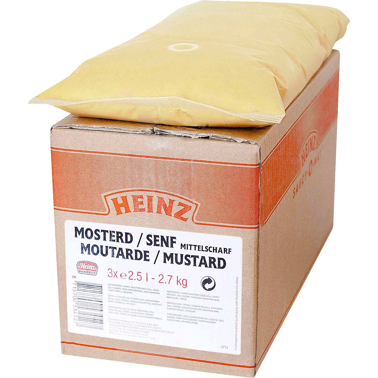 Nachfüllbeutel Senf mittelscharf Heinz 2,5Ltr, 3 Beutel/Karton